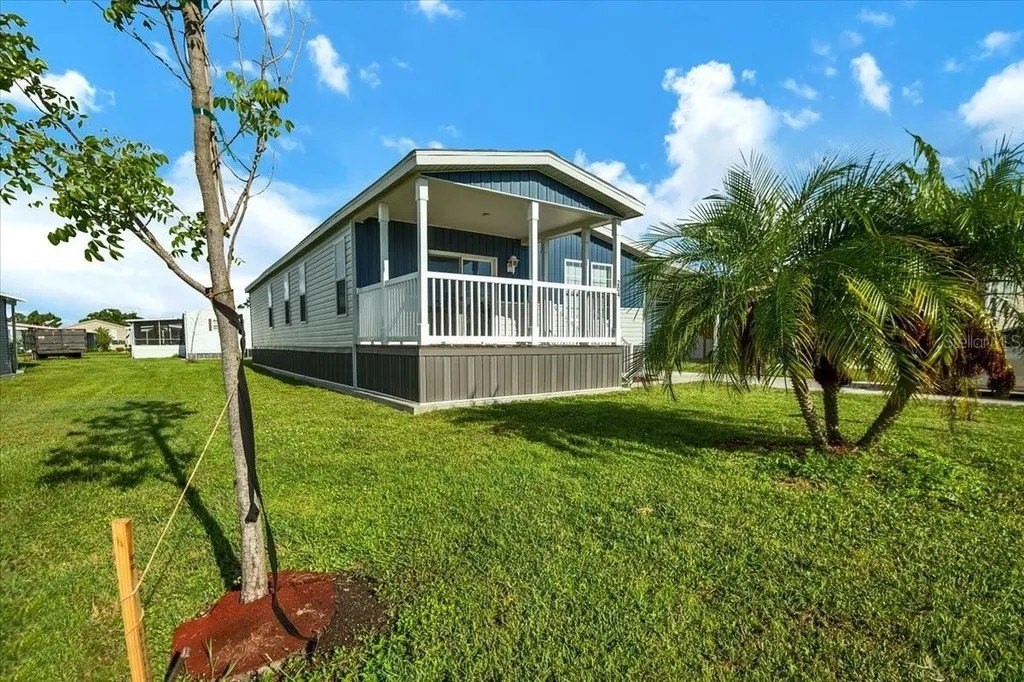 Welcome to this stunning brand-new 2024 Jacobson home, move-in ready and designed with modern comfort in mind. Offering 2 bedrooms, 2 bathrooms, and a versatile den, this thoughtfully crafted home features 1,372 sq. ft. of living space. The inviting front porch adds to its charm, while inside you'll find a bright open layout with wood cabinetry, luxury stainless steel appliances, double pane insulated windows, and a hidden walk-in pantry. Built with today's hurricane codes in mind, the home has 2x6 exterior walls for added durability, plus interior washer and dryer hookups for convenience. Additional highlights include a 12' x 12' golf cart shed with access doors and plenty of storage, along with peace of mind from multiple warranties: 1 year full-service on the home and AC (with 5-year parts), 10-year structural, 20-year shingles, and 1 year on appliances. Financing options are available for qualified buyers. Why settle for used when you can own brand new with warranties included? Located in La Casa, a quiet 55+ community nestled between Sarasota and Fort Myers, residents enjoy a serene lifestyle with natural beauty all around. The neighborhood is filled with mature trees, spacious green spaces, and eight picturesque lakes. Community amenities include two clubhouses, two heated pools, a boat ramp with access to the Gulf of Mexico, a recreation center, and a wide variety of social activities and events. Whether you're looking for an active lifestyle or a peaceful place to relax, La Casa offers the best of both.